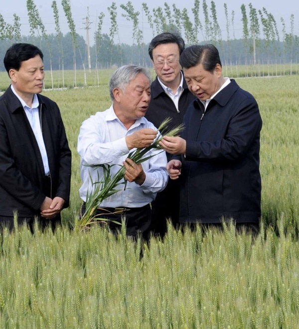 △2014年5月9日下午,习近平总书记来到河南省尉氏县张市镇,走进一片高标准粮田,看麦穗灌浆,问农田建设。