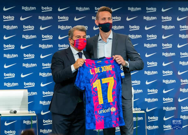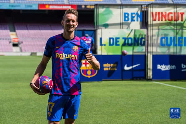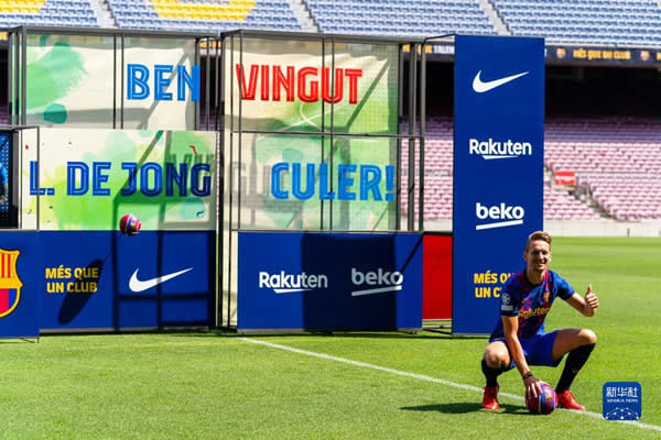 当日,西甲巴塞罗那队举行新闻发布会,从塞维利亚队租借来的荷兰球员卢克·德容正式亮相诺坎普球场。