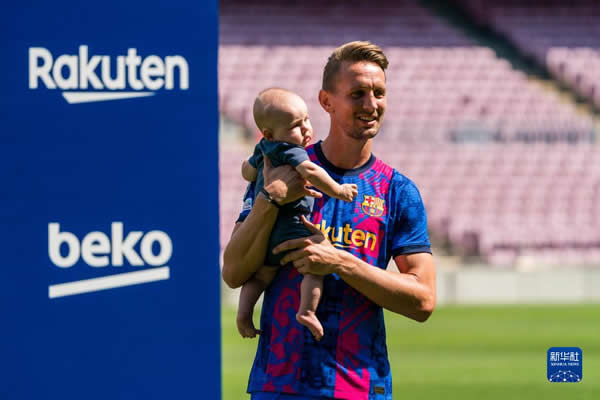 9月9日,卢克·德容身着巴塞罗那队球衣怀抱儿子亮相诺坎普球场。