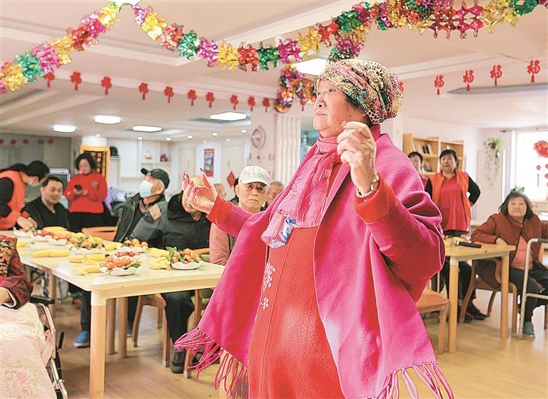 昨日,西岗区日新街道民乐社区的志愿者们走进铭仕养老院,和老人共同开展“我们的节日· 精神的家园”喜迎元宵节活动,在喜气洋洋的歌舞表演、猜灯谜、吃元宵、唠家常中,养老院里到处洋溢着节日的快乐气氛。大连新闻传媒集团记者王华 摄