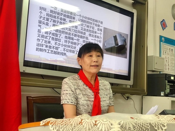 7月1日下午,沙河口区东北路小学一间教室内群情振奋,市关工委副主任管洵惟用满含温情的语言和丰富详实的图片影音资料,讲述了吴运铎把“把一切献给党”的动人故事,引发了同学们深深思考与共鸣。